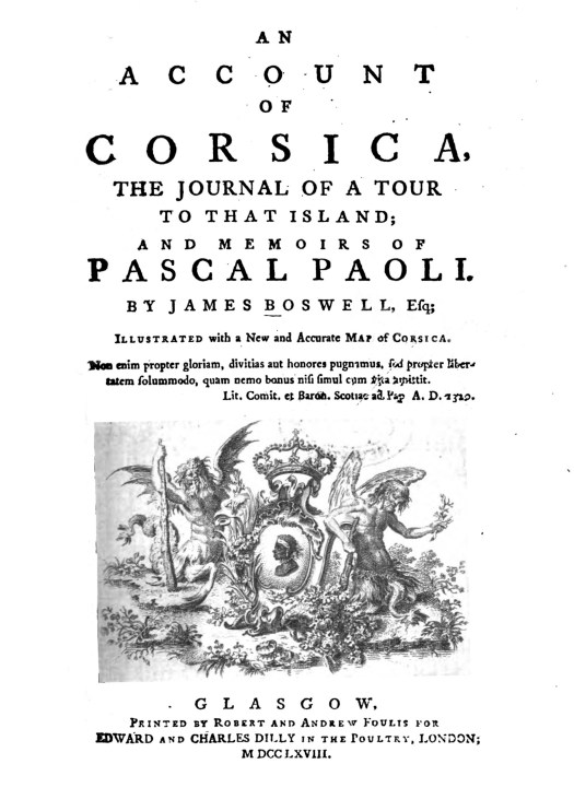 Pendant son sรฉjour avec Paoli, Boswell a tenu un journal dรฉcrivant leurs conversations et ses impressions personnelles sur le plus grand leader de Corse, remarquant les connaissances extraordinaires de Paoli, sa sagesse, sa compassion, son altruisme, sa dรฉtermination et son grand amour pour son peuple.